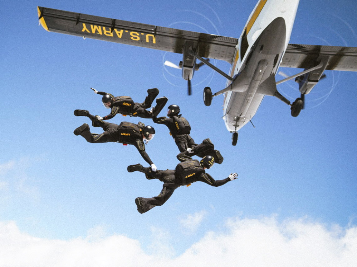 The Competition Team takes it to the next level by matching their skills in several disciplines against some of the top civilian and military skydiving teams in the world. They compete at the national and world levels, earning some of the highest accolades in parachuting and skydiving history. These men and women train year round to represent the Army as the "Champions of the Skies.”